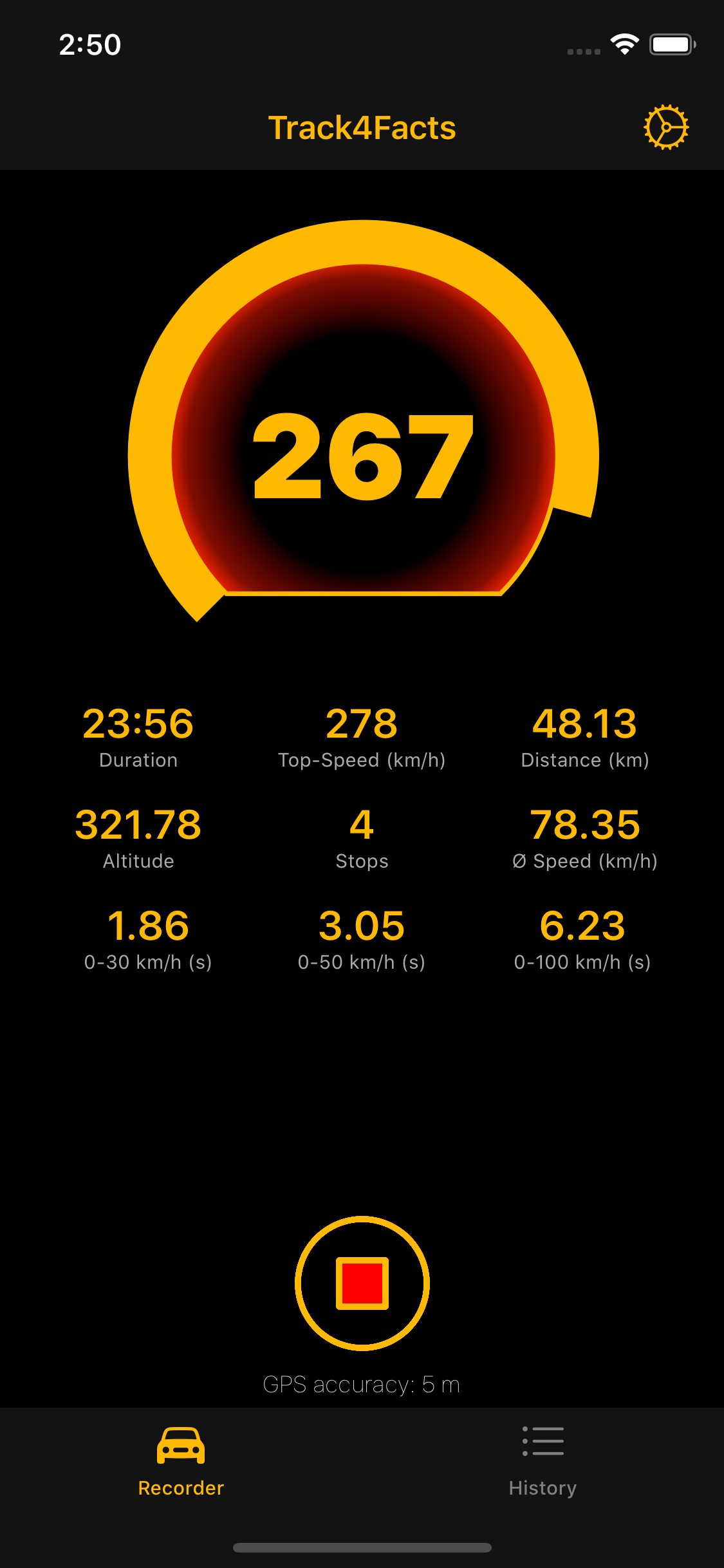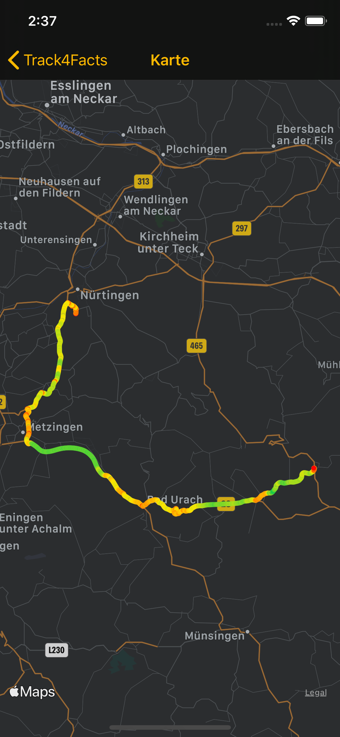 Die App hilft dir bei der Aufzeichnung deiner gefahrenen Strecke und zeigt dir zudem einige Interessante Auswertungen an, wie z.B. aktuelle Geschwindigkeit, maximale Geschwindigkeit, Strecke, Dauer, Durchschnittsgeschwindigkeit, schnellste Beschleunigungszeit von 0-30 / 0-50 / 0-100 km/h, Beschleunigungskräfte, absolvierte Höhenmeter sowie die Anzahl der Stops.